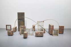 brick, concrete, bamboo, old window, old wood door, iron, wheel, dimensions variable